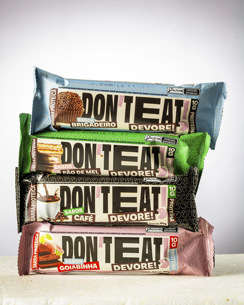 Depois de prontas, nossas barras são cuidadosamente embaladas para preservar frescor e sabor, passam por um rigoroso controle de qualidade, tudo para garantir que cada mordida entregue exatamente o que a Don’t Eat promete.